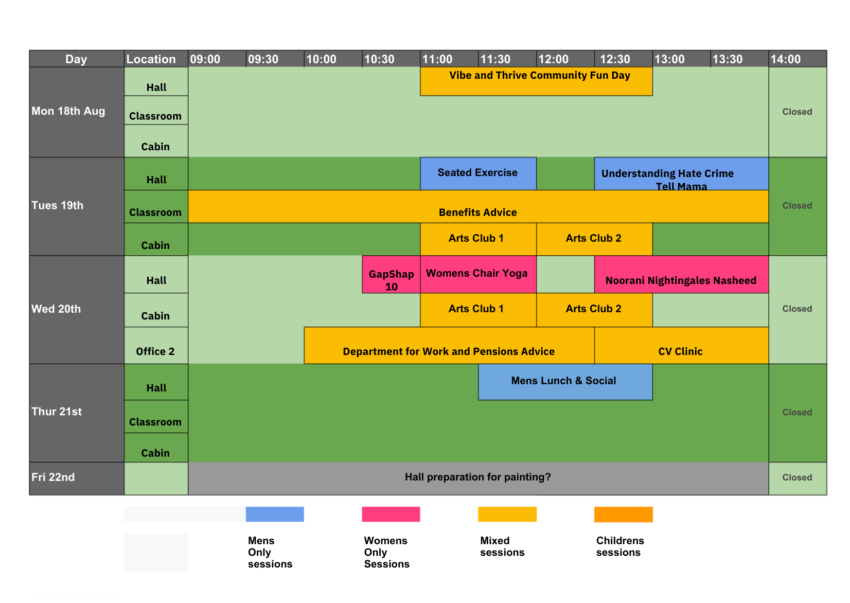 We provide a range of free activities and support services designed to nurture your mind, body and community spirit.